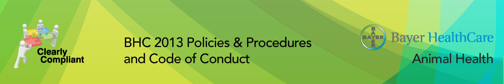 This booklet, “Bayer HealthCare Animal Health Compliance Policies and Procedures,” contains vital rules and procedures that you are required to understand and follow. These policies and procedures are an essential part of the HealthCare Compliance Program for the Animal Health Division. The HealthCare Compliance Program includes, among other things, the Policies and Procedures in this booklet, the Bayer HealthCare Code of Conduct, and the HealthCare Compliance Training. The program provides employees, contractors, consultants and agents with the knowledge and training to act ethically and with proper judgment in various activities related to sales, and marketing, as well as interactions between Bayer employees, contractors, consultants and agents.